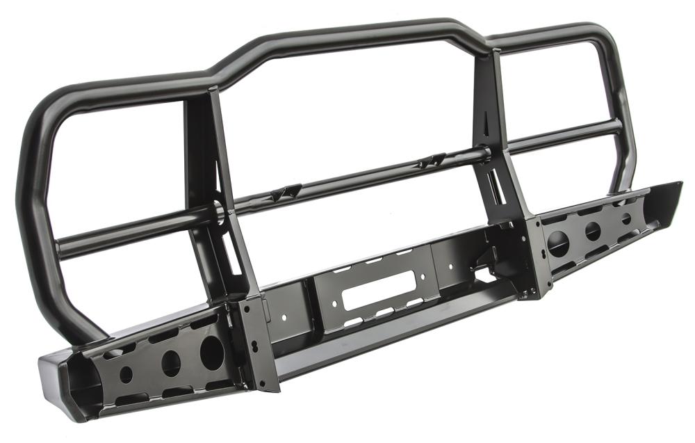 Передний силовой бампер с защитной дугой РИФ служит для защиты автомобиля на бездорожье и в городе. В случае контакта или легкого столкновения с препятствием в виде камней, бревен, пней, колей или незадачливых водителей, риск получить серьезные повреждения машины существенно уменьшается, а это очень важно в экспедициях и в повседневной жизни. Бампер с кенгурятником не только защитит, но и украсит внедорожник благодаря эффектному и элегантному дизайну.